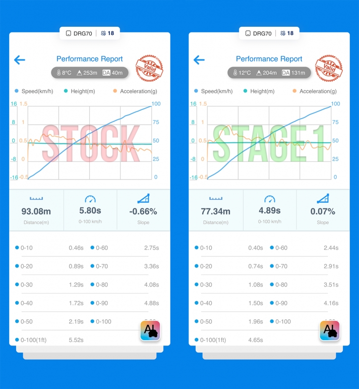 Разница Stock и Stage1 — 0,91 сек. 15,8 метра!