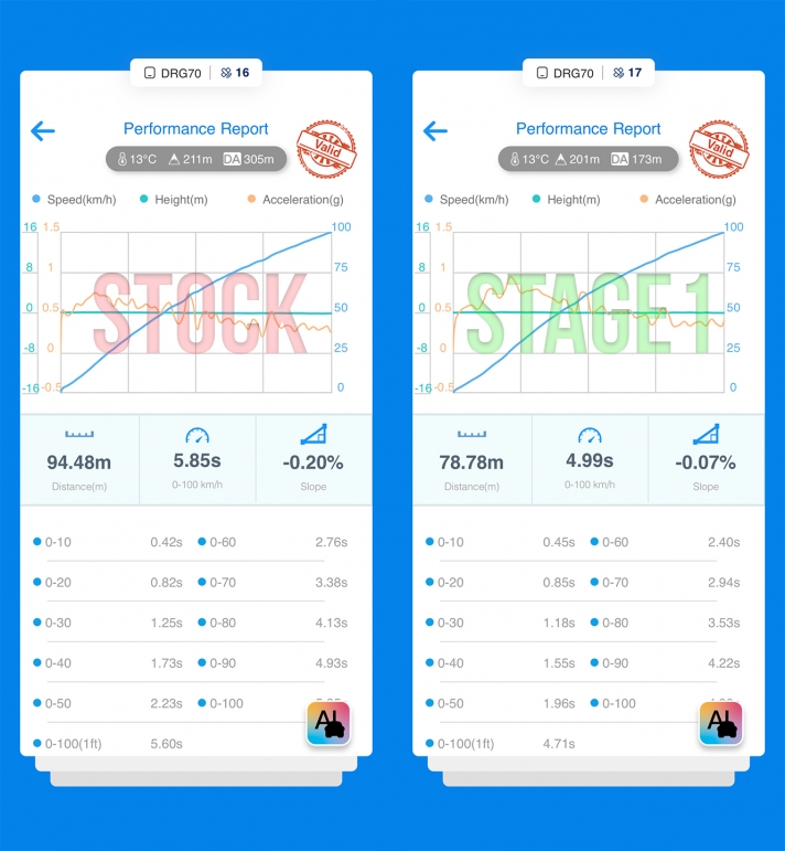 Разница Stock и Stage1 — 0,86 сек. 15,7 метра!