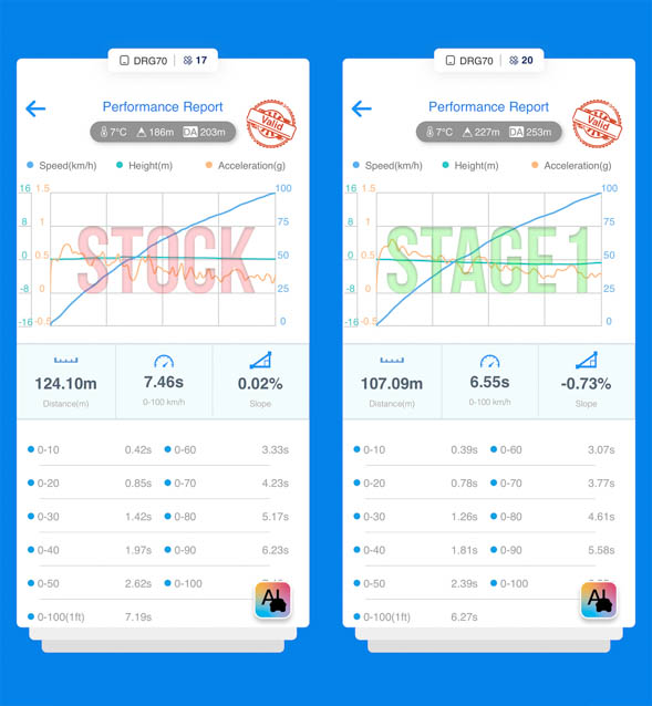 Разница Stock и Stage1 — 0,91 сек. 17,0 метра!