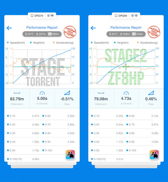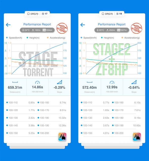Разница Stage torrent и Stage2+ZF8HP — 0,27 сек. 3,7 метра!